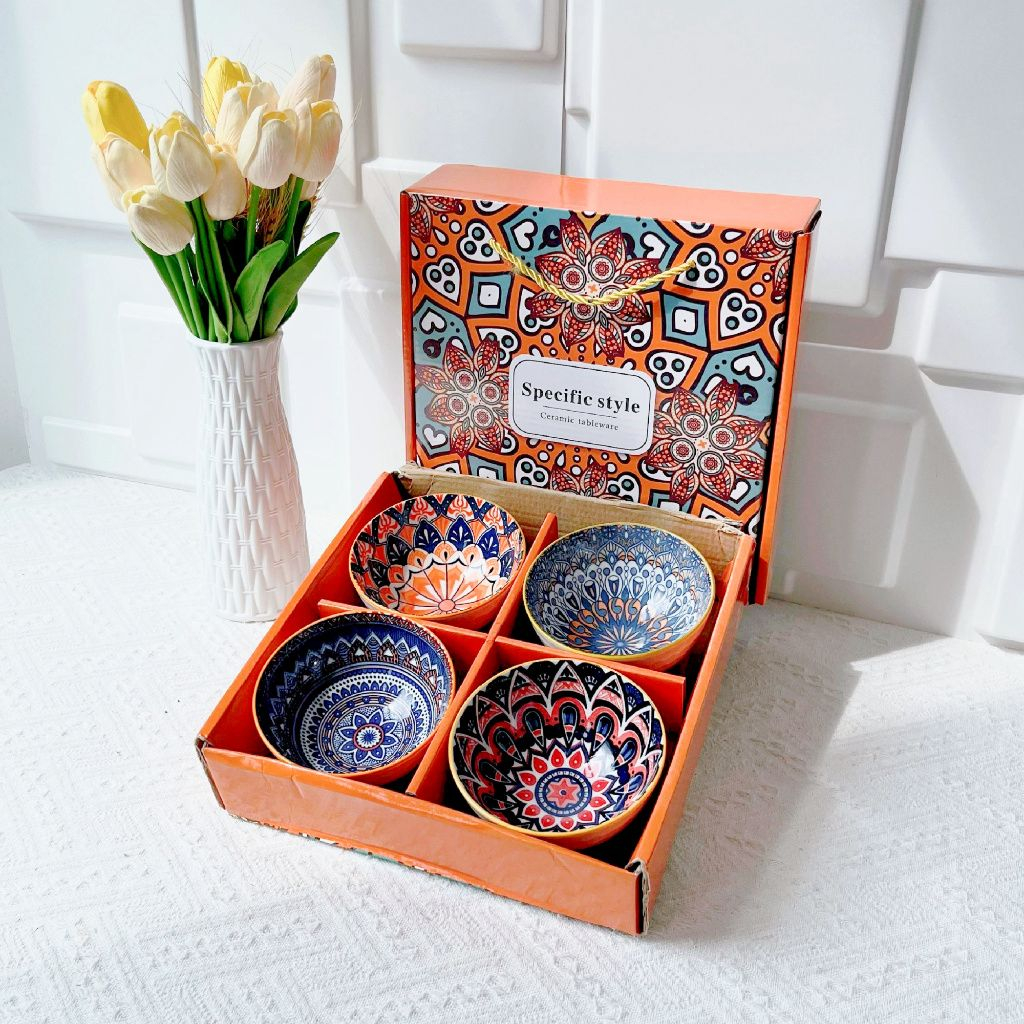 Adauga un strop de culoare si rafinament meselor tale cu acest set de 2 boluri ceramice, realizate din portelan de calitate si decorate cu un design vibrant. Fiecare bol impresioneaza prin modelul sau artistic, ideal pentru servirea cerealelor, supelor sau gustarilor preferate.