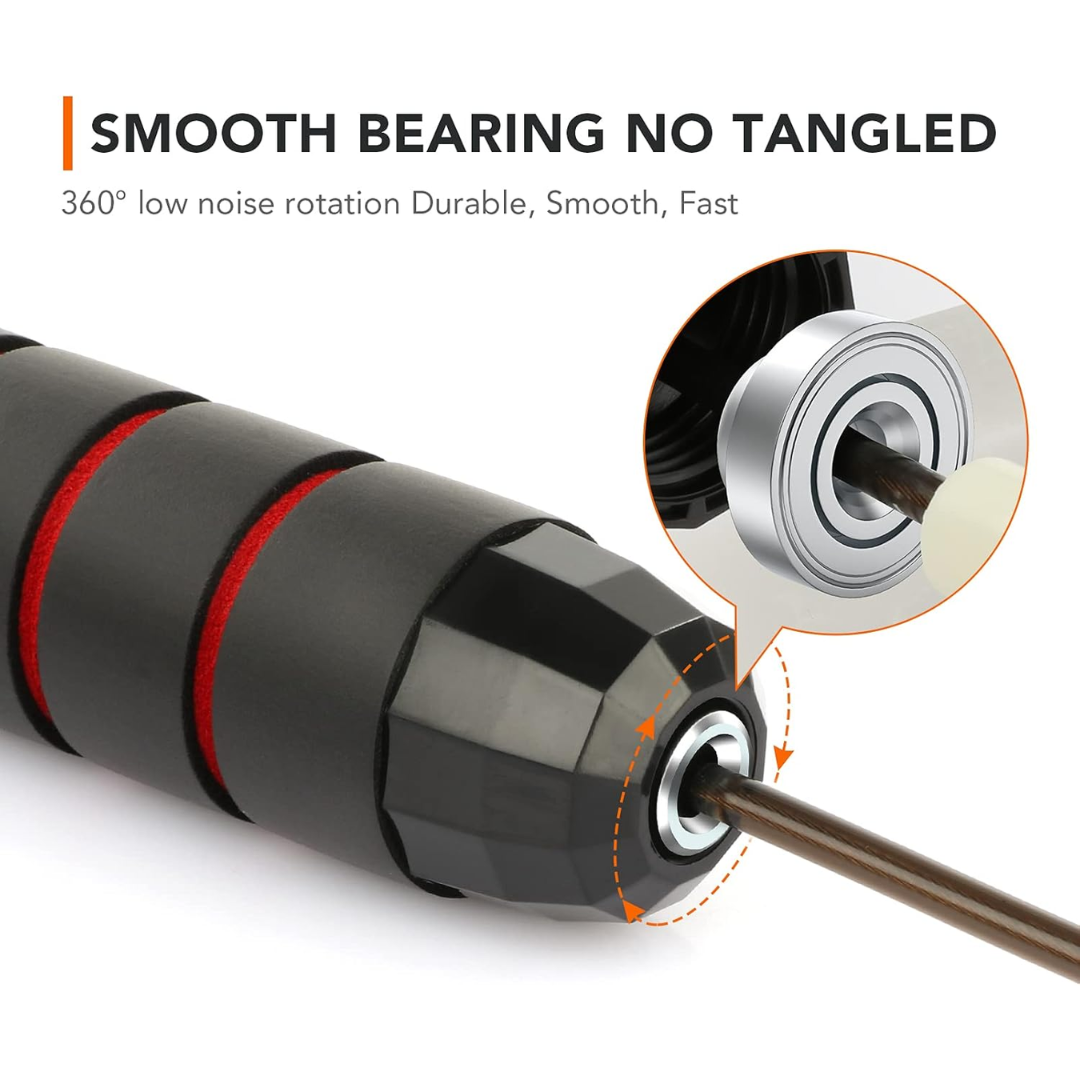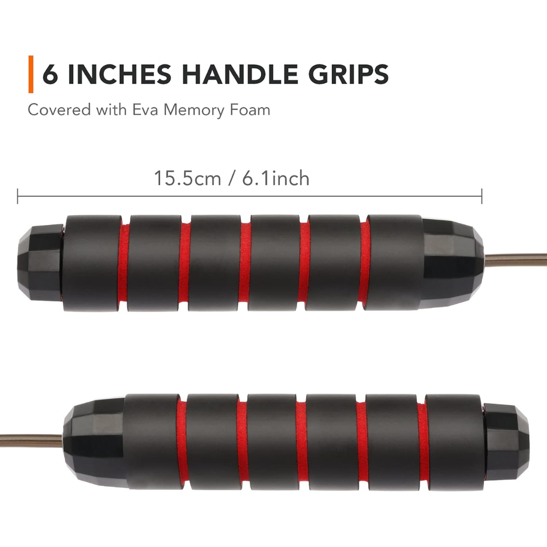 Coarda de sarit, jump rope, manere cu spuma de memorie, lungime ajustabila, Negru/Rosu